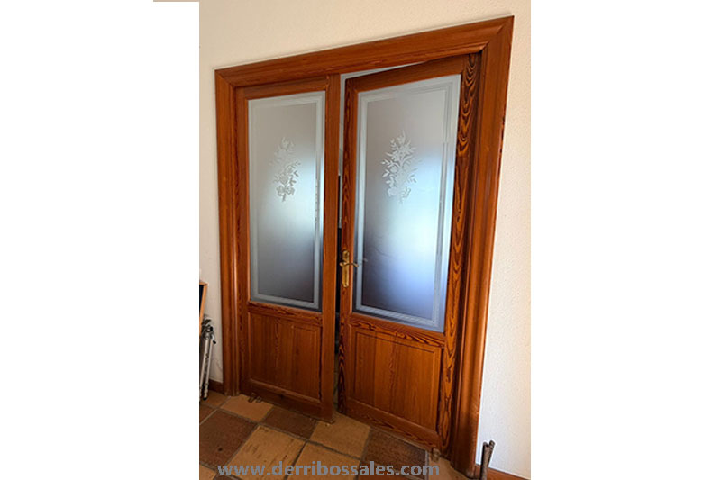Puerta dos hojas con cristales antiguos.