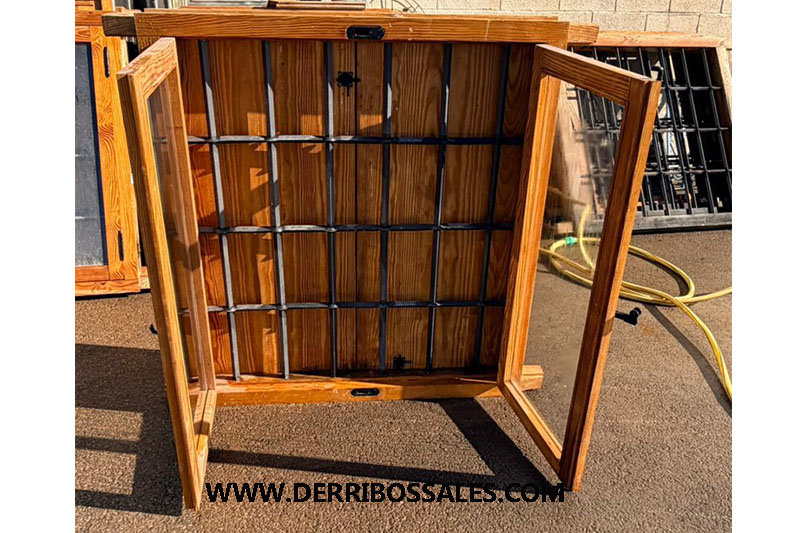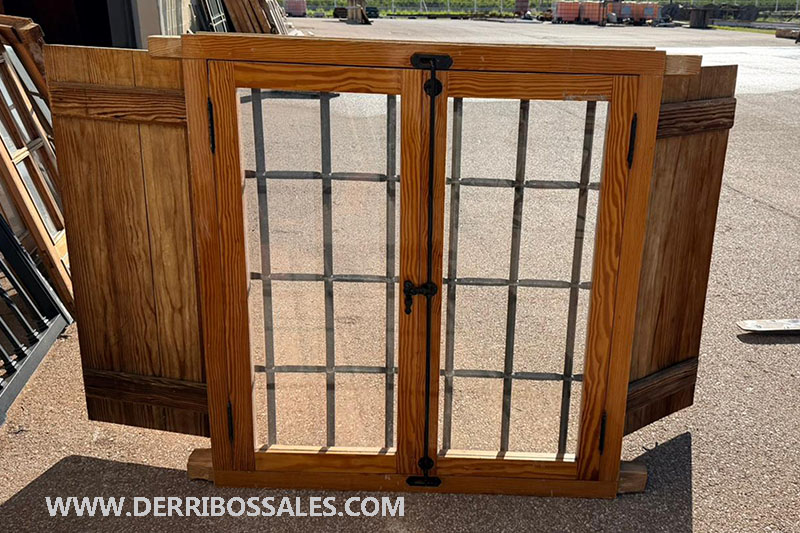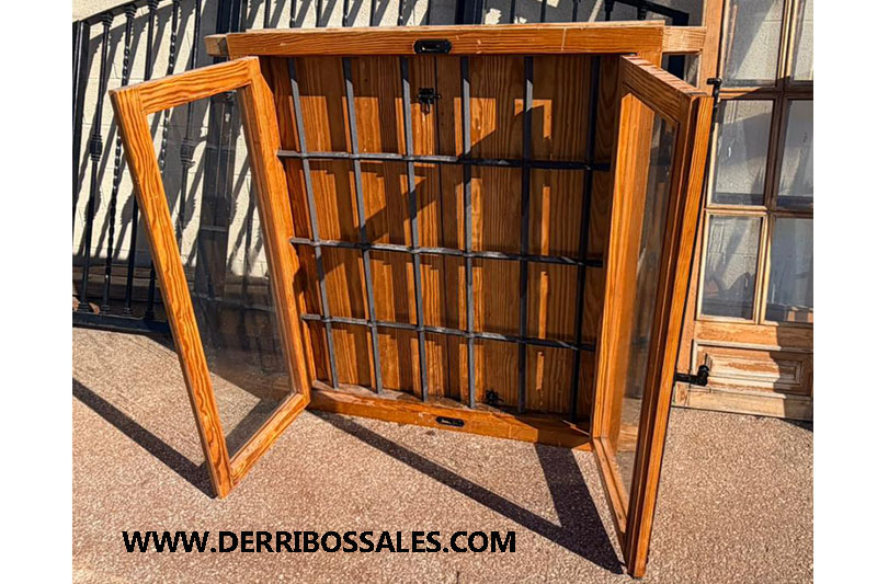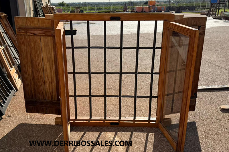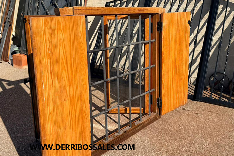 Ventanas de madera de Melis (Mobila nueva), con reja y contraventanas de madera.